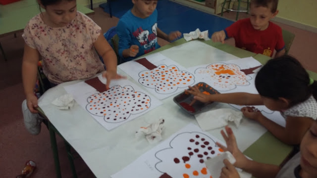 Hemos aprendido cuales son los colores del otoño y hemos decorado nuestra clase con unos arboles otoñales.